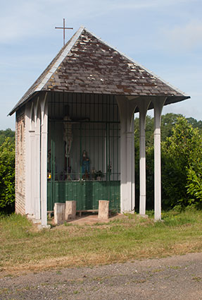 Cette chapelle est dédiée à sainte Brigitte, saint Pompée et saint Donat. LocalisationÀ Nandrin, face à la ferme de Sotrez. CommentairesLa chapelle de Sotrez à Nandrin a dû être bâtie dans la seconde moitié du XIXe siècle et appartient depuis toujours à la famille de Lamine de Bex. Chapelle en pierres et en briques, précédée d'un péristyle en bois peint. On y vénère plusieurs saints, dont saint Donat, pour préserver le hameau de la foudre et de la grêle, saint Pompée pour protéger les porcs des maladies de toutes sortes et sainte Brigitte, pour le gros bétail, surtout en cas de vêlages (sainte Brigitte patronne dès biesses à cwènes) et pour la croûte de lait des nourrissons (les parents y déposaient de petits bonnets et d'autres vêtements ayant appartenu aux enfants guéris). On venait autrefois des hameaux et villages voisins à travers bois et champs pour faire ses dévotions aux saints protecteurs. Récemment repeinte, la statue en plâtre de saint Pompée le représente également comme un prêtre barbu, vêtu de la soutane, du surplis et de la chasuble, avec un calice dans la main gauche, tandis qu'un porc est couché à ses pieds. Sainte BrigitteSainte Brigitte (avec sa vache), présente en la chapelle de Sotrez, de même qu'au pays de Herve, est la patronne de l'Irlande. Elle fut contemporaine au Ve siècle de Saint Patrice (385-461) ce grand apôtre-missionnaire de l'Irlande, surnommée l'île des Saints. La terre irlandaise est couverte d'églises dédiées à sainte Brigitte qui est fêtée officiellement le 2 février, en même temps que la grande fête de la Présentation de Jésus au temple. Ce jour-là, traditionnellement, à l'exemple de la Sainte Vierge, les mamans consacrent leurs enfants à Dieu. Probablement que cet usage explique indirectement l'offrande de petits bonnets d'enfants dans la chapelle de Sotrez… Voici un passage de la vie de Ste Brigitte qui explique la présence de la vache à ses pieds ainsi que le culte qui lui est rendu par les producteurs de lait : "… Brigitte se trouvait avec l'apôtre irlandais St Patrice, et voilà qu'en l'écoutant prêcher la parole de Dieu, ses yeux parurent se fermer dans le sommeil, de quoi St Patrice lui faisant reproche, la douce vierge se mit à genoux devant lui, en disant : "Pardonnez-moi, mon Père, c'est une vision que Dieu m'a donnée. - Et laquelle, dit le saint homme ? - J'ai vu des laboureurs qui cultivaient la terre de l'Irlande et des semeurs qui jetaient le grain dans les sillons; et tous ces hommes étaient vêtus de blanc, et les moissons croissaient abondantes et je voyais aussi couler sur votre terre comme des ruisseaux de lait : puis sont venus d'autres laboureurs sinistres et noirs, qui de leurs socs malfaisants, ont arraché et détruit la moisson première et semé la zizanie. Alors, à la place des ruisseaux de lait très pur, j'ai vu couler des flots d'eau fangeuse. - Ô vierge, s'écria Patrice en soupirant, Dieu t'a montré l'avenir. C'est nous qui semons le bon grain et la moisson bénie de l'Évangile. C'est la doctrine du Christ et le lait très pur des âmes ; mais un jour viendront les prédicants du mensonge, et que de maux ils apporteront à notre chère Irlande…". Saint Pompée d'AmayCe saint homme était le confesseur de sainte Ode, dans la seconde moitié du XVe siècle. Le centre actuel de la dévotion est la collégiale d'Amay. Autrefois, nombreux étaient les pèlerins qui y accouraient le 1er mai à l'occasion du pèlerinage annuel à saint Pompée et sainte Brigitte. Une statue du saint, conservée dans la collégiale d'Amay, est une jolie représentation en terre cuite datant de 1728. Il est représenté accompagné d'un porc, le calice à la main. Inconnue en Ardenne et dans le Brabant wallon, la dévotion à saint Pompée est exclusivement attestée, semble-t-il, dans le Pays de Liège. Photos